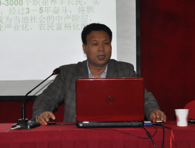 曹斌云教授首先展示剖析了陕西省靖边县、黑龙江省宾县等3个案例,然后曹教授与学员互动,将案例教学中的经验和做法对比学员所处县域的基本情况进行对比,并展开了深入的剖析和讨论。通过问答形式分析了影响畜牧业发展的主要问题,特别是针对学员提出的当地牛羊短缺,养羊规模化发展提出了宝贵的发展建议。最后曹教授对国家相关政策和建议与培训学员进行了信息共享。