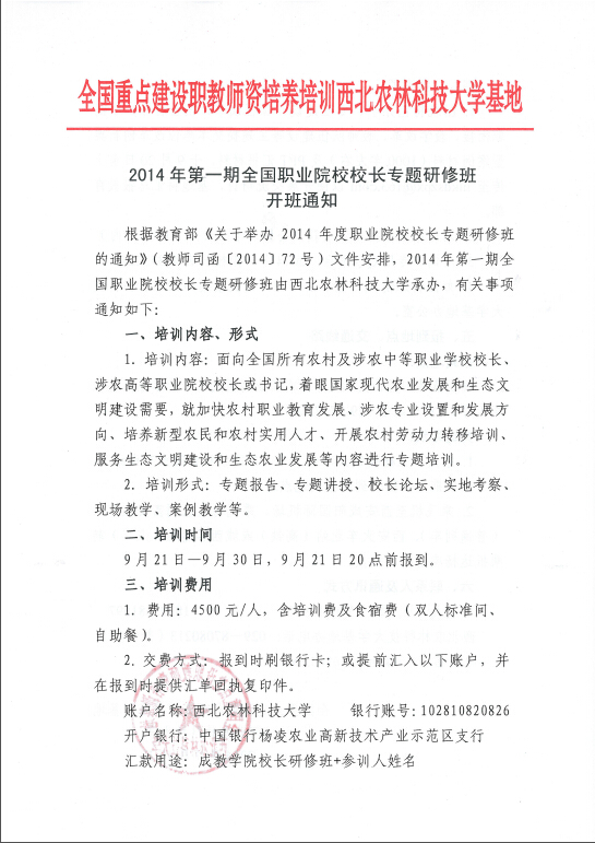 » 2014年第一期全国职业院校校长专题研修班开班通知