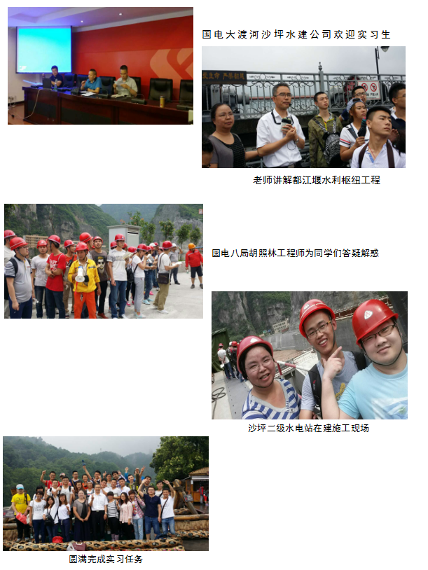 近期,我院农业水利工程专业班28名本科生在带队老师吴红英和专业指导老师李宇的带领下进行了为期十天的专业技能综合实习,对四川乐山峨边大渡河有关工程和都江堰水利枢纽进行深入学习。期间,中国国电大渡河沙坪水电建设有限公司对实习给予了极大的支持和帮助。