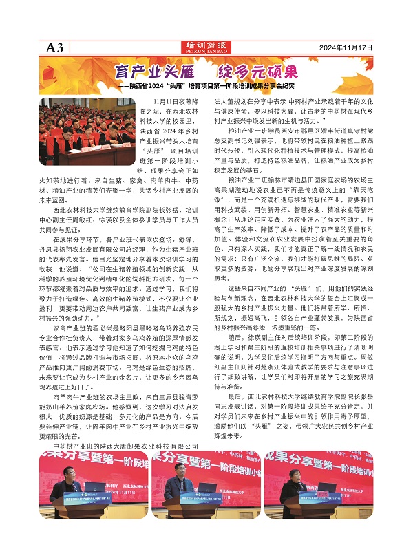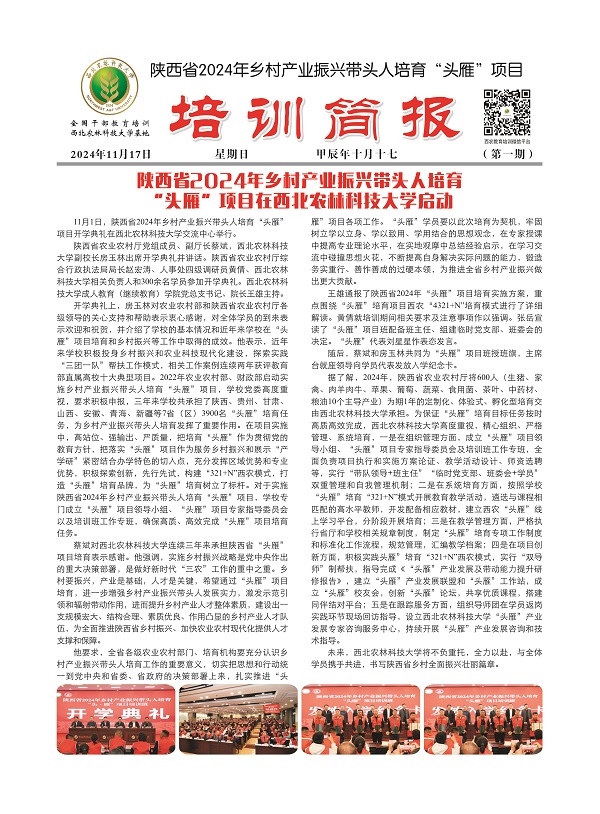 第一期  陕西省2024年乡村产业振兴带头人培育“头雁”项目