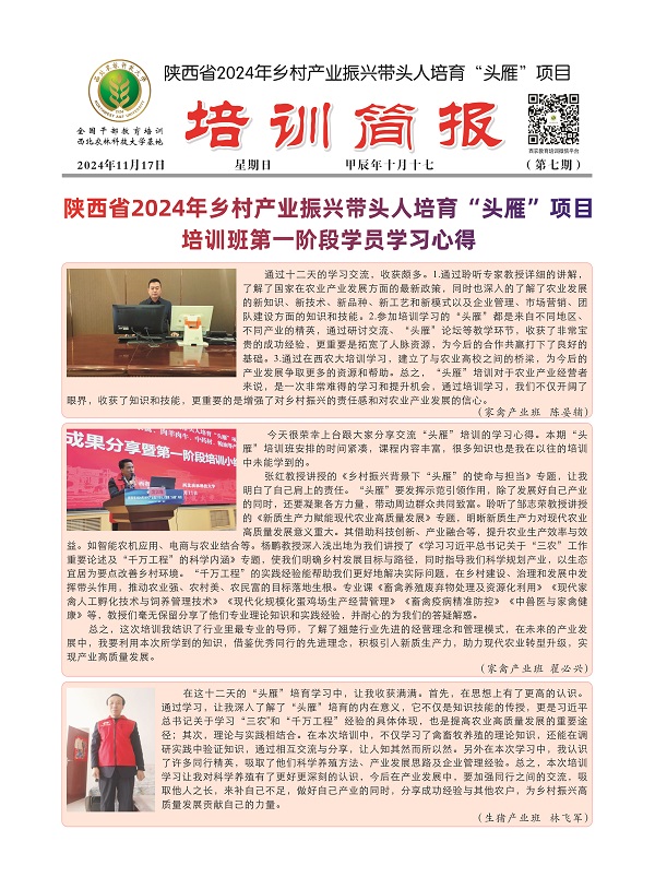 第七期  陕西省2024年乡村产业振兴带头人培育“头雁”项目