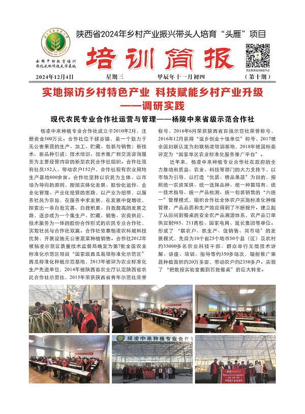第十期  陕西省2024年乡村产业振兴带头人培育“头雁”项目