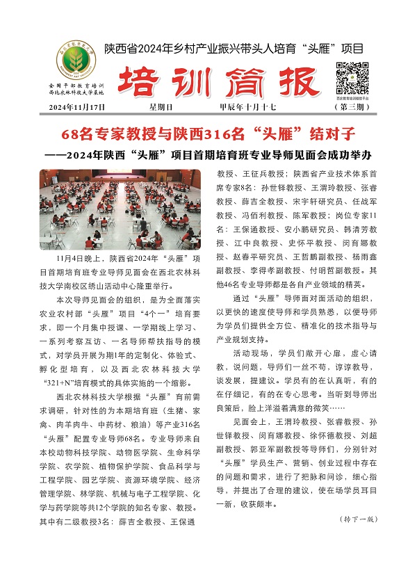 第三期  陕西省2024年乡村产业振兴带头人培育“头雁”项目