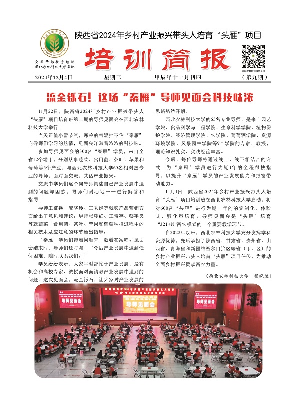 第九期  陕西省2024年乡村产业振兴带头人培育“头雁”项目