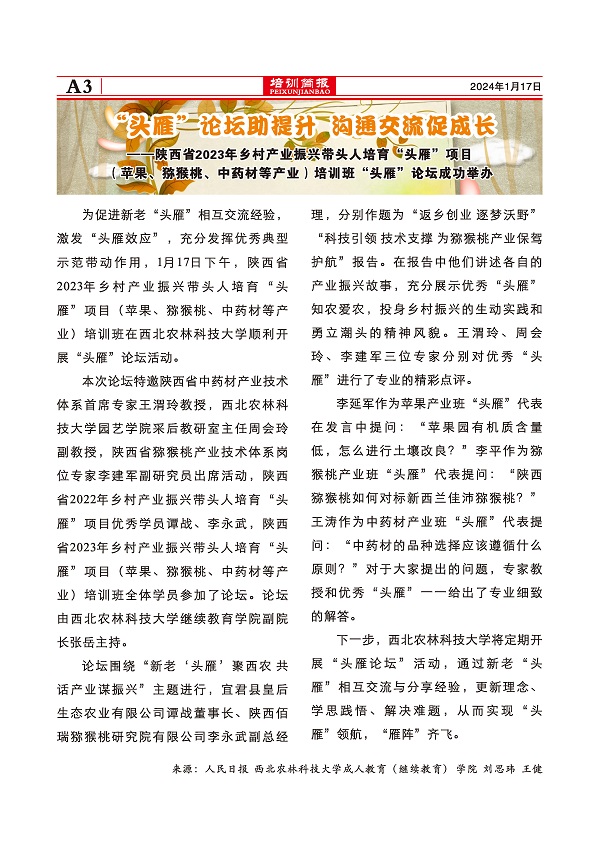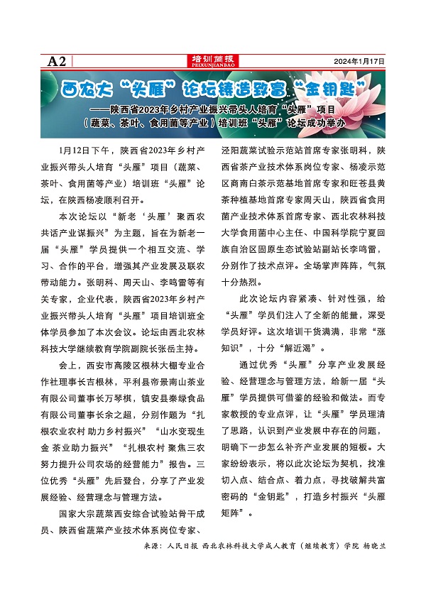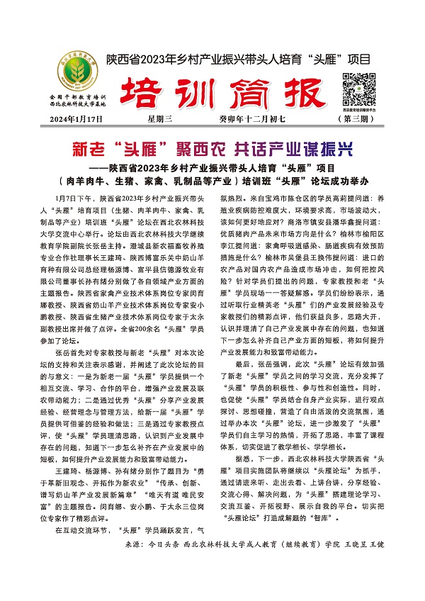 第三期   陕西省2023年乡村产业振兴带头人培育“头雁”项目培训简报