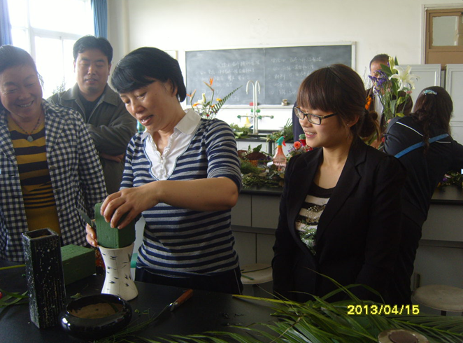 4月15日,正在mgm美高梅79906进行培训的国家级中职师资教师培训班园林技术专业学员经过《插花艺术》理论课程学习之后,在园艺学院四楼实验室进行了插花操作实训,园艺学院刘雅莉教授为学员们进行了现场教学指导。