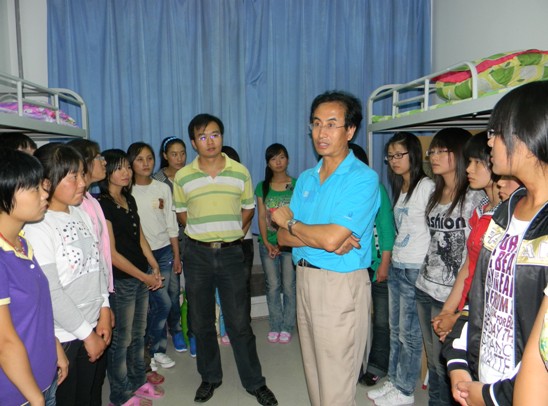 9月4日晚,为了了解新生情况,确保新生安全入住,我院党委副书记谢恩魁、副院长李大寨在学生管理办公室老师及2010级辅导员的陪同下前往南校区学生六号和十三号楼,对我院10级新生宿舍进行视察慰问。