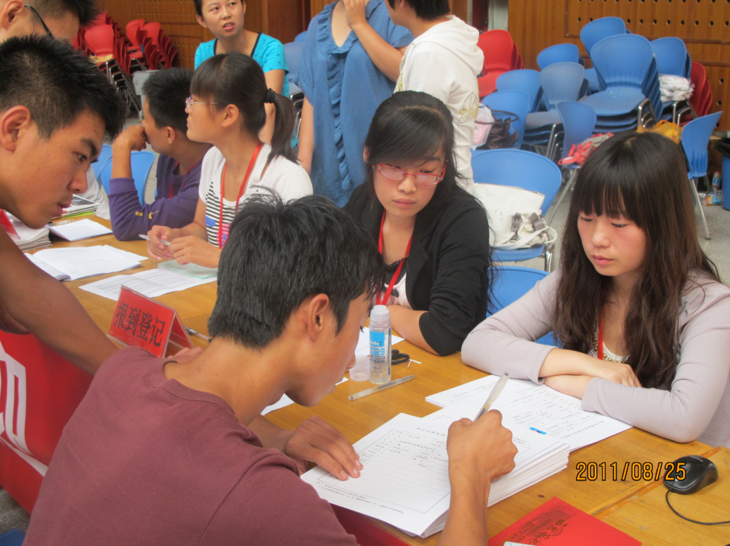 我院接待现场分别设立了新生接待处、咨询处、注册处、宿舍引导组等,学院还特别为新生家长提供了茶水及休息场所,在各个环节上尽心为新生提供全面服务。几十名学生志愿者积极主动为新生及家长介绍报到流程和学院基本情况,耐心的指导新生们办理报到入学的填表格,交档案等各种手续,不断讲解注意事项,主动带领新生及家长到各窗口办理各项手续,还帮助他们搬运行李。虽然炎炎烈日烤照着他们,接待组所有人员都热情饱满,使新生一进校就感受到了学院学生良好的精神面貌和集体大家庭的温暖。