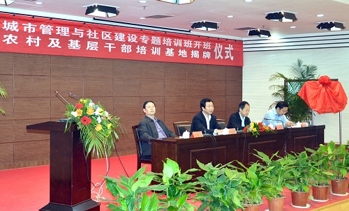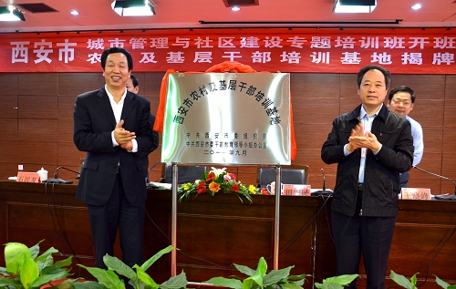 9月25日上午,基地首期培训班“西安市城市管理与社区建设”专题培训班在mgm美高梅79906开班,mgm美高梅79906党委副书记徐养福,西安市委组织部副部长、干教办主任田周民在开班仪式上讲话并为干部培训教育基地揭牌。