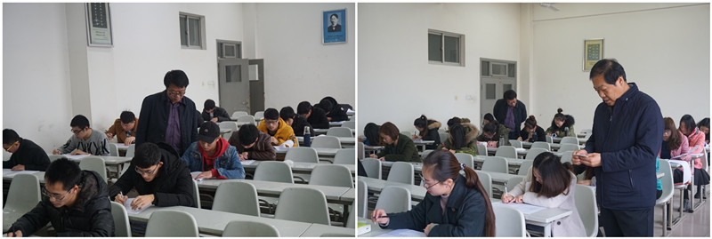 我院期末考试于2017年1月3日—12日进行,为加强考风考纪建设,在考试期间院党委书记宋西德、院长王雄、副书记薛小荣在教学办人员的陪同下到南校3号教学楼考场,对我院期末考试进行巡考检查。 学院领导认真巡查每个考场,对考场安排、监考教师履行职责以及学生答题等情况进行行了全面、细致的检查。期末考试工作整体运行良好,监考教师们认真履行职责,按时到达考场,并在每场考试前再次强调考试纪律,按要求清场,严格核对证件,考场纪律严肃,秩序井然。