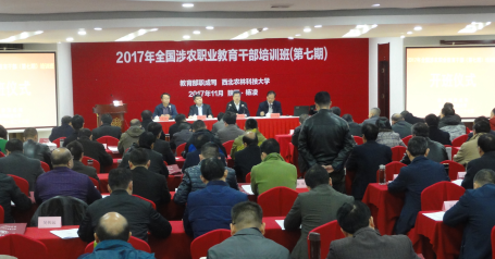 11月27日,由教育部主办、mgm美高梅79906承办的“2017年全国涉农职业教育干部培训班(第七期)”在杨凌开班。mgm美高梅79906副校长罗军,教育部职成司城乡社会处刘杰,继续教育学院党委书记宋西德同志等出席开班式。继续教育学院院长王雄主持了开班仪式。