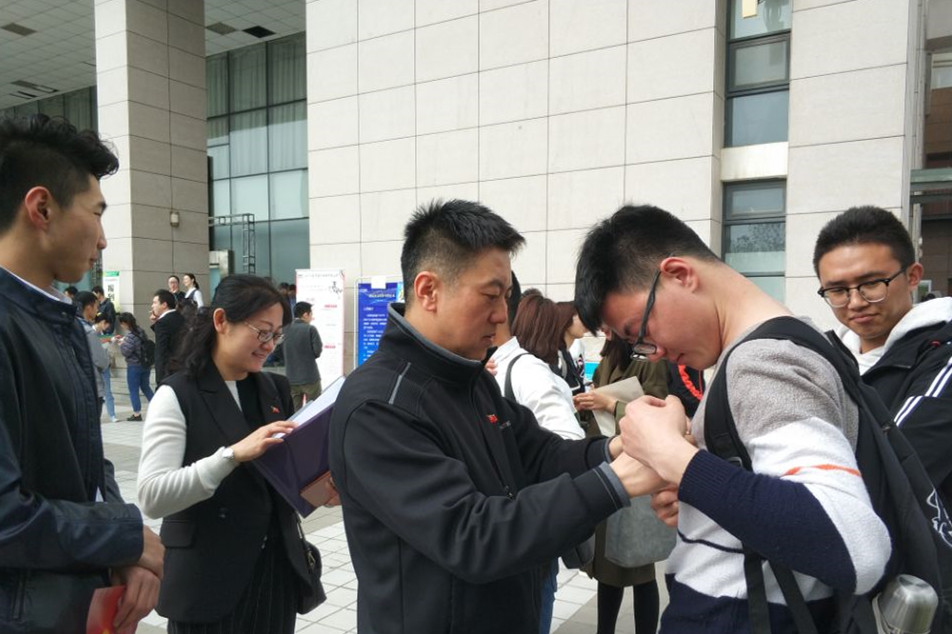 3月31日上午,在mgm美高梅79906北校区绣山活动中心举行了大型招聘会。为带头承诺践诺,践行党的宗旨,强化服务意识,我院2014级学生党支部成立了党员就业专项服务小组,开展志愿服务活动。