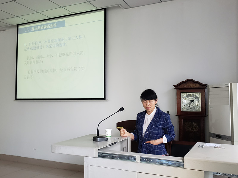加强培训指导,提升宣传能力。“磨刀不误砍柴工”,5月2日下午,党委宣传部新闻中心编辑记者张晴老师受邀,以“写好新闻报道经验谈”为题,面向全院教职工开展新闻宣传技能第二次培训。培训从“三个”遵从入手,围绕新闻客观规律、表述规范、写作规律等方面进行令深入细致地讲授,强调新闻要用事实说话,尊重采访规律,一事一报,做好架构,抓住新闻“真实、 新鲜、快速、短小”的特点,通过对新闻消息写作的标题解析、案例的架构分析和内容的解读,更易于大家对写作方法和技巧的掌握,进一步提升宣传工作能力。