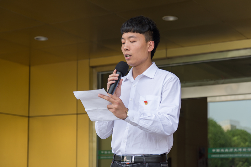 学生党员代表蔡蓉杰,面对党旗郑重许下承诺。思想上,加强政治理论学习,密切关注国内外大事和党的大政方针,贯彻落实党的各项决议,严格履行党员义务和责任,保持党员先进性。学习上,认真学习各科知识,提高专业技能,并做到理论与实践相结合,让自己能将所学知识运用到实际中。工作上,注重实际工作技能的培养,提高自己的业务水平,让自己在未来的工作中更有竞争力。生活上,继续保持良好的生活作息,勤恳节俭,与人为善,发扬出党员的先锋模范作用,起到带头作用,用自己的实际行动给身边其他人带来积极影响。