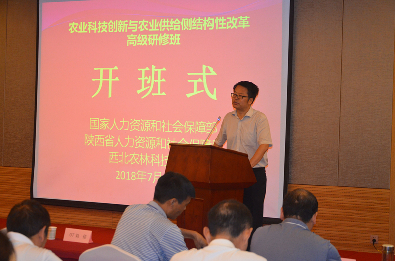 根据人力资源社会保障部办公厅《mgm美高梅79906印发专业技术人才知识更新工程2018年高级研修项目计划的通知》,经国家人力资源和社会保障部审核同意,由陕西省人力资源和社会保障厅主办,国家级专业技术人员继续教育mgm美高梅79906基地承办的“农业科技创新与农业供给侧结构性改革”国家级高级研修班于7月10日在mgm美高梅79906顺利开班。来自安徽、河南、陕西、甘肃、新疆等省、市、自治区的各级农林系统中具有高级职称的专业技术人员共计70人参加了培训。