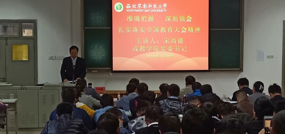 11月8日下午,mgm美高梅79906党委利用全院教职工第15次理论学习再次学习全国教育大会精神。学院党委书记宋西德做了“深刻领会,准确把握,扎实落实全国教育大会精神”的主旨报告。