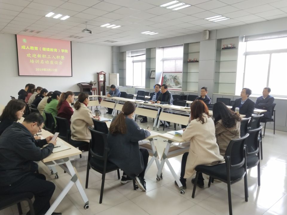 根据学院事业发展需要,近期学院面向校内外公开招聘11位工作人员。为帮助新职工尽快了解学院,转变角色,更好的融入成教这个大家庭,在岗位上发光发热,3月22日下午,学院在3楼会议室召开了新职工入职培训启动座谈会。会议由李大寨副院长主持,院领导班子和科室负责人参与座谈。