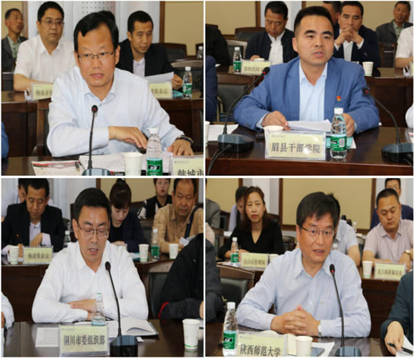 参会代表进行交流发言,韩城市政府副市长王文俊、眉县干部学院院长温文斌、铜川市委组织部考核办副主任谢化卿、陕西师范大学教师干部教育学院书记李宗嗣、礼泉县袁家村村委会副主任张飞等代表依次就各自在推进三农发展、乡村振兴、人才引进与培育、基层党建标准化、地方产业发展、校企合作、新型职业农民培训、现场教学设计安排等方面进行了交流发言。mgm美高梅79906王征兵教授、郭亚军副教授就如何选择当地主导产业、打通产品高价销售渠道以及如何提升培训现场教学质量和效果、增强现场教学合力等作了精彩的点评。
