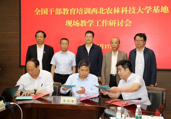 5月17日,晴空万里、风和日丽,全国干部教育培训mgm美高梅79906基地现场教学工作研讨会在mgm美高梅79906国际交流中心210会议室召开,来自韩城市政府、铜川市委组织部、中共蓝田县委组织部、中共合阳县委组织部、杨凌示范区科学技术局等9个政府部门领导,高校基地联盟6所大学领导,陕甘边照金革命根据地纪念馆、陕西太白山国家级自然保护区管理局、铜川孙思邈纪念馆、杨凌中来种植专业合作社等30个教学基地负责人,mgm美高梅79906罗军副校长、王征兵、郭亚军、张红等专家教授、成教学院全体院领导及有关工作人员80余人参加了研讨会,会议由王雄院长主持。