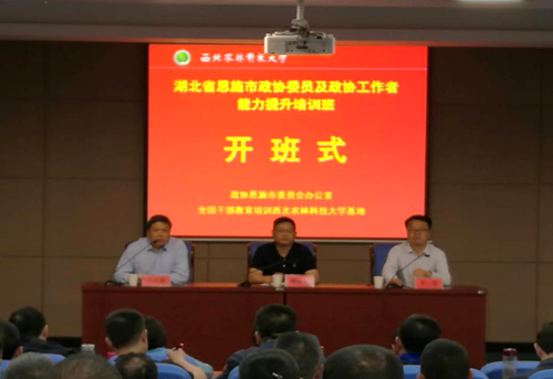 开班式上王雄院长对参训学员的到来表示了热烈欢迎,介绍了杨凌、学校、学院的历史发展情况,并希望学员在培训期间做到提高认识,端正学习态度,发挥主观能动性,按照政协恩施市委员会办公室和培训班的要求,完成好各项培训任务。柳诲龙副主席讲到本次培训给学员们提供了一个很好的学习和交流平台,要求学员们做好“三个转变”,即由部门领导向学员的转变、由工作状态向学习状态的转变、由家庭生活向集体生活的转变,珍惜此次学习机会,增强学习的责任感、紧迫感,增强组织性、纪律性;严格按照基地教学安排,认真完成每项教学任务,用培训所学的知识努力破解工作中的问题,扎实推进工作。