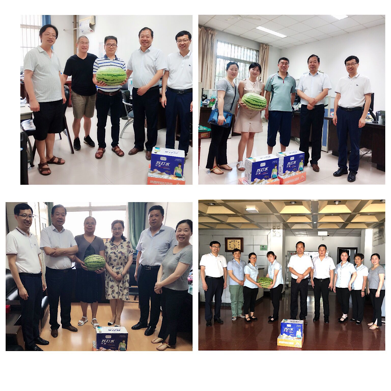 宋书记对大家的辛勤工作表示感谢和慰问,并将苏打水、甜西瓜等送到大家手中,叮嘱他们做好工作的同时,要劳逸结合,做好防暑,科学合理安排作息时间,时刻把健康、安全放在第一位。