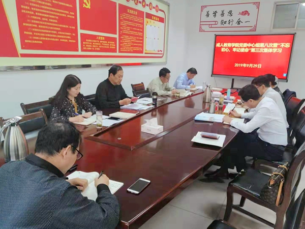 9月29日下午,成教学院领导班子成员开展“不忘初心、牢记使命”主题教育第三次集中学习研讨,研讨会由学院党委书记宋西德同志主持,班子全体成员参加了学习研讨。