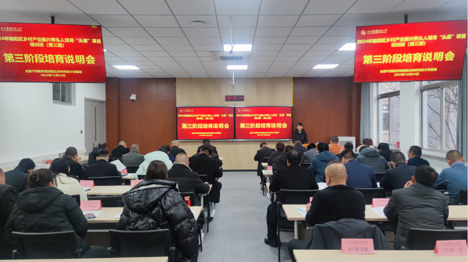 寒冬腊月,岁末将至,2024年榆阳区乡村产业振兴带头人培育“头雁”项目培训班(第三期)第三阶段培育说明会于12月24日上午在mgm美高梅79906如期举行。尽管寒风凛冽,但教室内却暖意融融,来自榆阳区的50名“头雁”学员们满怀期待与热情,再次相聚mgm美高梅79906,开启了“头雁”培育项目的最后冲刺阶段。